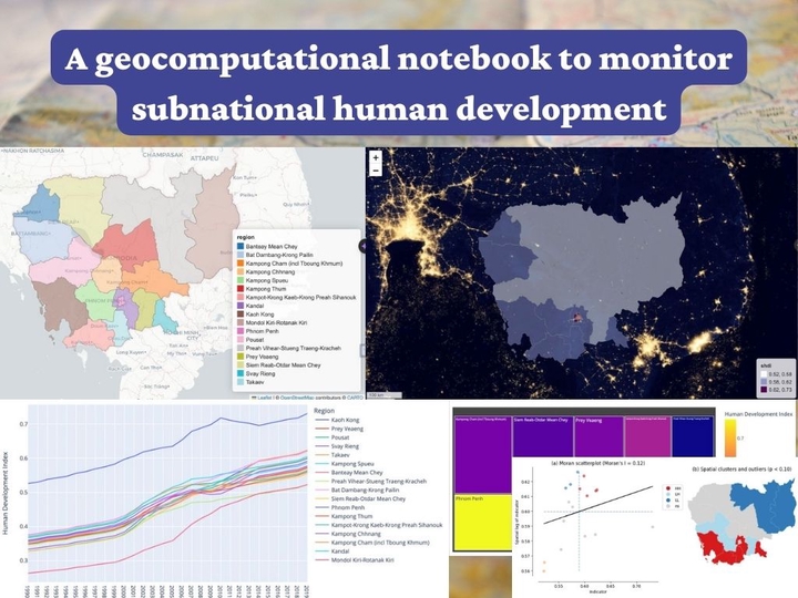 Monitoring subnational human development Carlos Mendez Last updated on Mar 14, 2026 1 min read Python, Exploratory Data Analysis, Remote Sensing GoogleColab GoogleColab GEE VIIRS-like DMSP-like VIIRS DMSPcc A geocomputational notebook to monitor subnational human development Exploratory data analysis Exploratory spatial data analysis Spatial mapping Spatial dependence Spatial inequality spatial python regional exploratory data analysis remote sensing Carlos Mendez Associate Professor of Development Economics My research interests focus on the integration of development economics, spatial data science, and econometrics to better understand and inform the process of sustainable development across regions. Please enable JavaScript to view the comments powered by Disqus. comments powered by Disqus Related Monitoring regional sustainable development Exploratory Spatial Data Analysis: Spatial Clusters and Dynamics of Human Development in South America Exploratory Spatial Data Analysis (ESDA) Spatial inequality dynamics Introduction to spatial data science